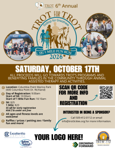 Join us for a beautiful morning along the river at Columbia Point Marina Park for the TROT 5K & 1-Mile Fun Run/Walk on Saturday, October 17, 2026! Whether you’re a seasoned runner or just want to enjoy a walk with friends and family, this event is a great way to get outside and support an incredible cause.